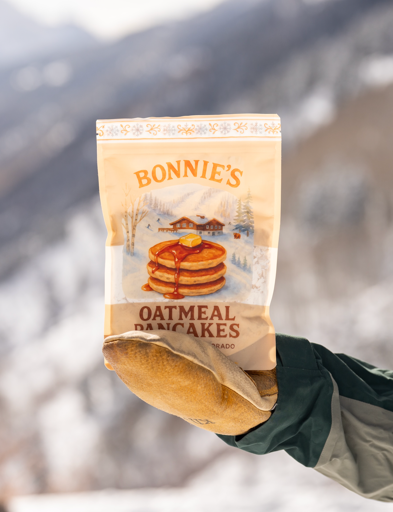 Born at 10,410 ft on Aspen Mountain, Bonnie’s pancakes have fueled skiers for decades. Made from the same hearty oatmeal recipe served at Bonnie’s mid-mountain restaurant, each bag brings a taste of Aspen history to your kitchen. Makes 8-10 large pancakes.